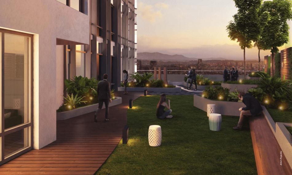 This 56-story building, which offers vast views of the city and green areas, was constructed with wellbeing in mind.